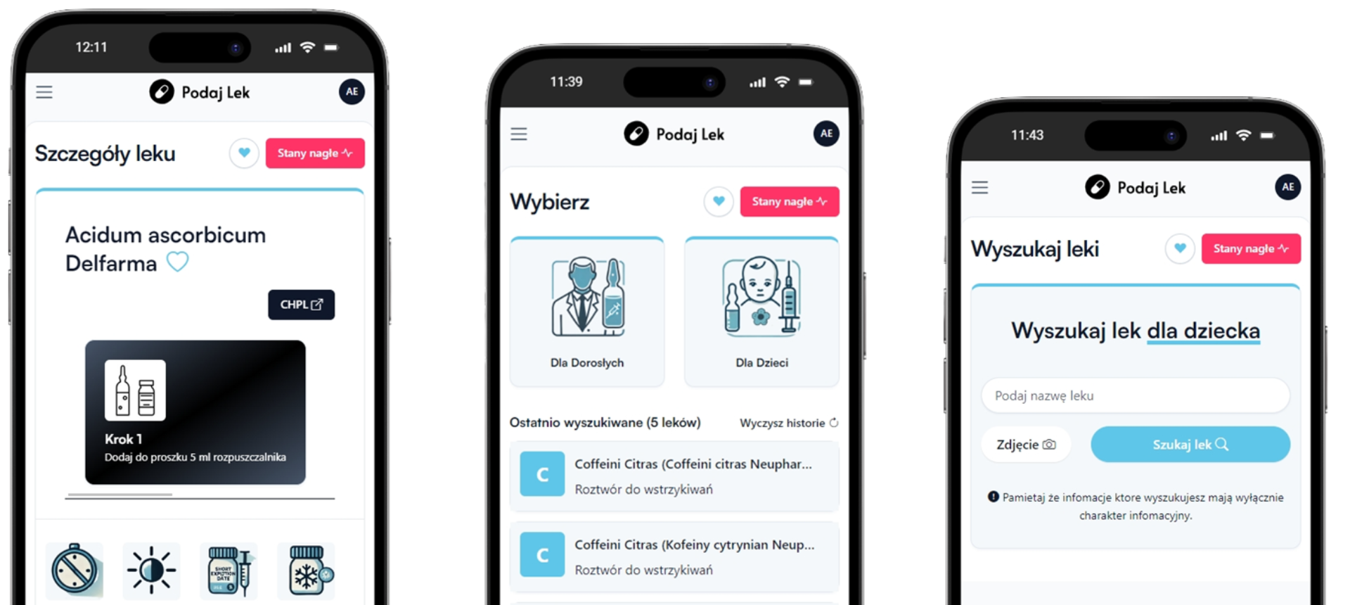 Nasza aplikacja pozwala szybko sprawdzić sposób i formę podania leku bez przeglądania długich ulotek medycznych za pomocą paru kliknięć.